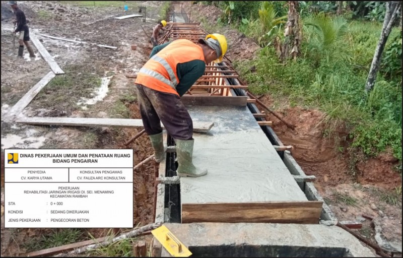 Nusapos.com- Pemerintah Kabupaten Rokan Hulu melalui Dinas Pekerjaan Umum dan Penataan Ruang (PUPR) melaksanakan proyek rehabilitasi jaringan irigasi di Desa Menaming, Kecamatan Rambah, Kabupaten Rokan Hulu.